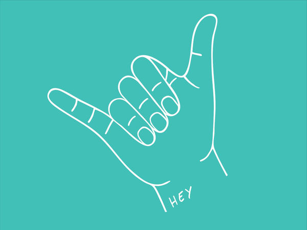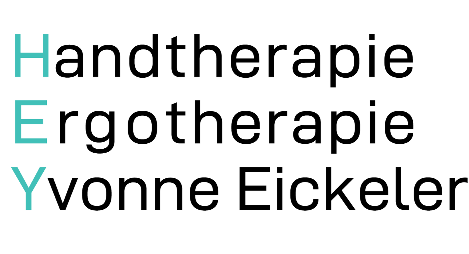 Logo featuring a black and white line drawing of a hand giving a thumbs-up with the word "HEY" on the wrist. To the right, the words "Handtherapie Ergotherapie Yvonne Eickeler" are written, with the letters H, E, E, and Y highlighted in turquoise.